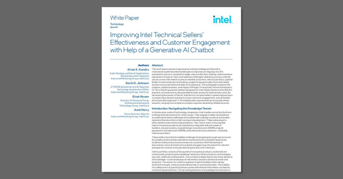 Overall, VTA is helping Intel reimagine how technical knowledge is accessed and used in sales, leading to faster responses, more effective customer engagements, and better-informed internal decision-making.